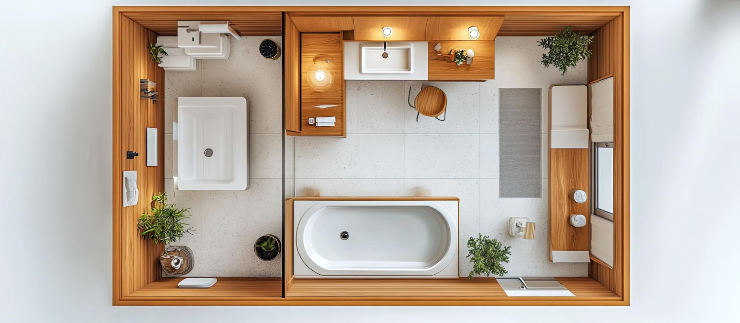 - Installation de meubles, sanitaires et tuyauteries adaptés à votre espace,